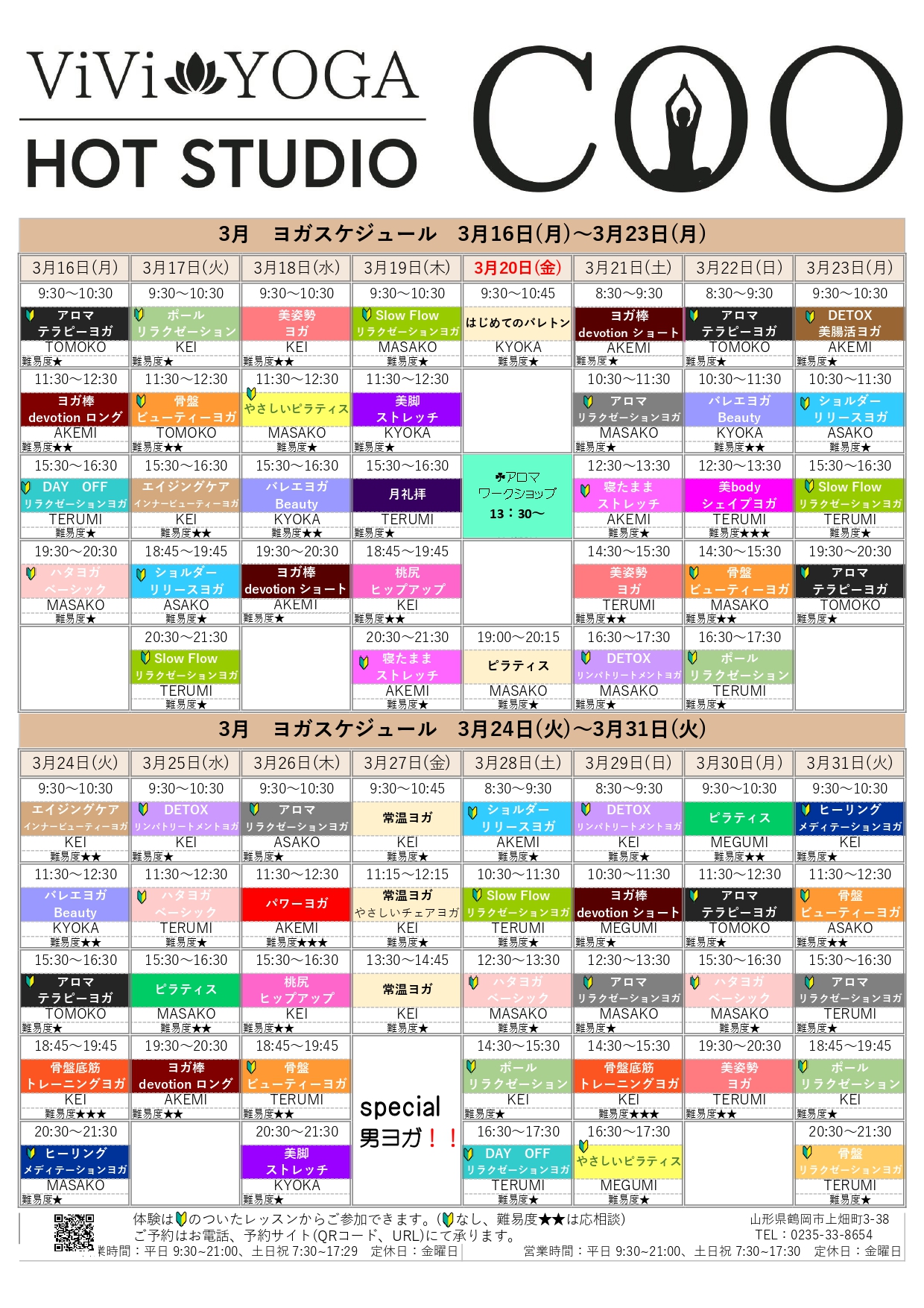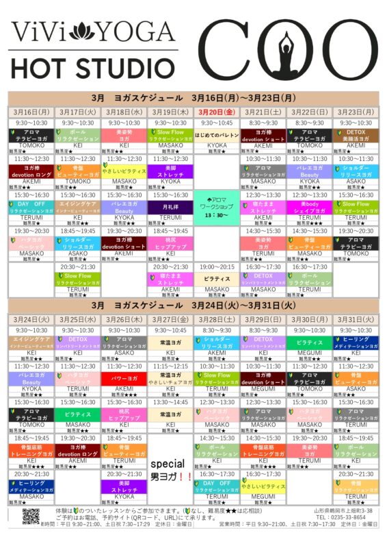 山形県鶴岡市のホットヨガスタジオビビヨガクー(美々ヨガクー・ViVi YOGACOO)