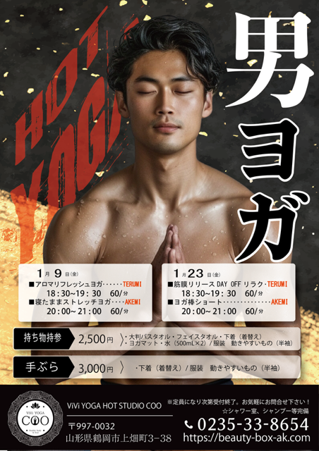 山形県鶴岡市のホットヨガスタジオビビヨガクー(美々ヨガクー・ViVi YOGACOO)