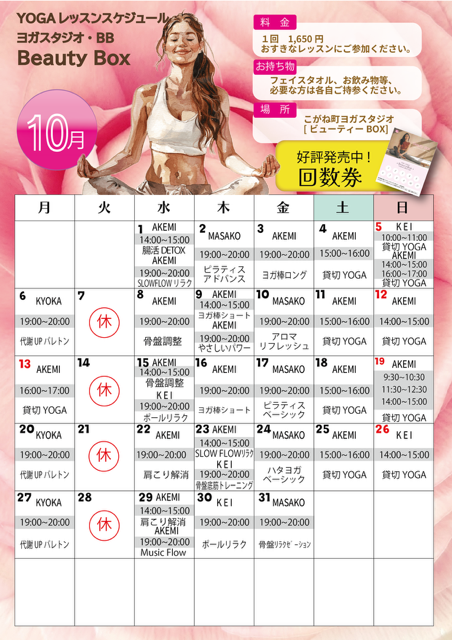 10月「Beauty Box ヨガスケジュール」