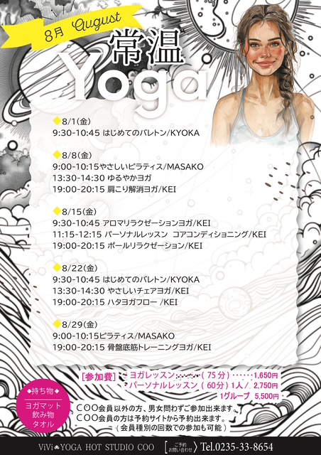 8月「常温ヨガ」